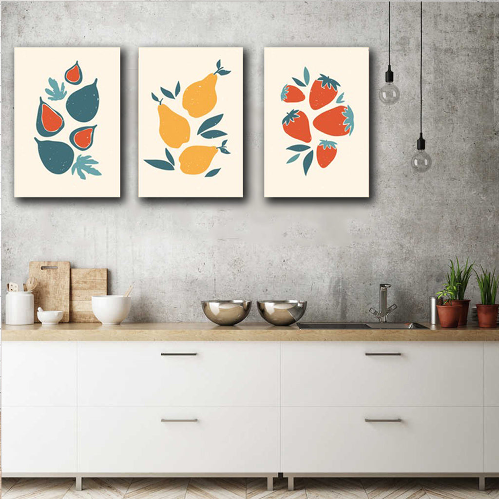 Set 3 tablouri canvas bucatarie minimaliste fructe 3
