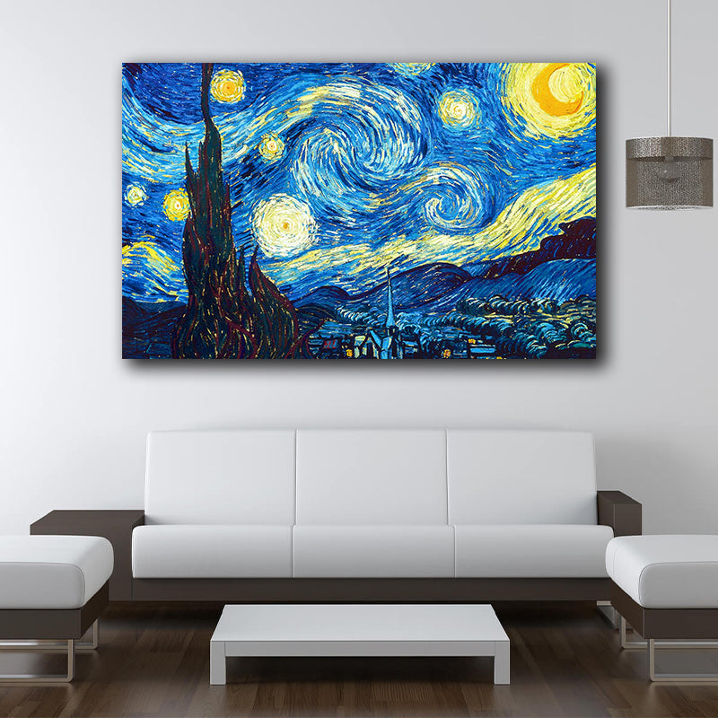 Tablou Canvas Abstract Pictura Noapte Instelată Van Gogh pentru Living sau Dormitor Pânză Canvas Ramă de Lemn Calitate Superioară WallDecor