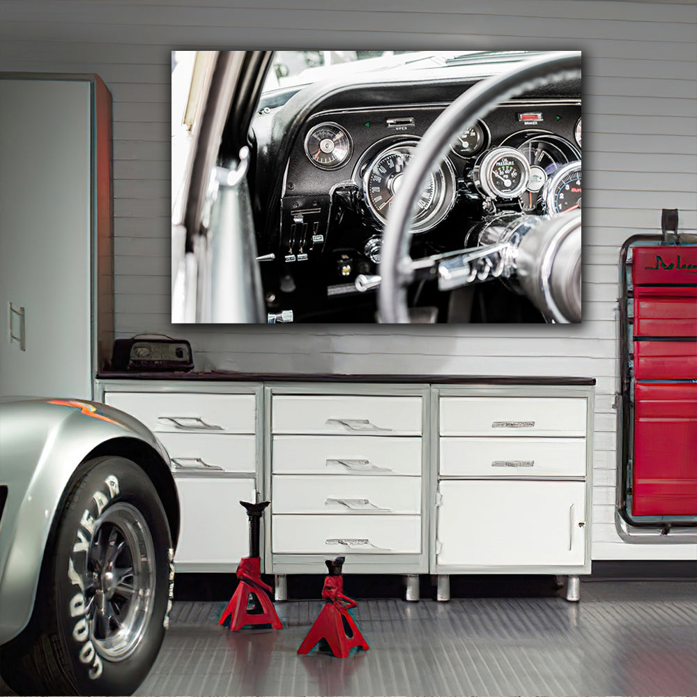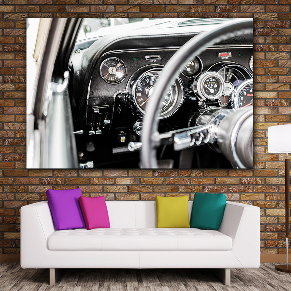 Tablou canvas cu masini bord volan si ceasuri masina de epoca