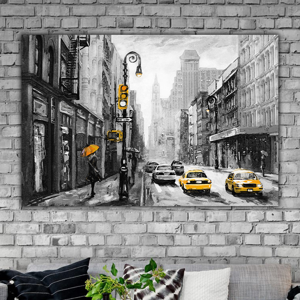 Tablou canvas desen peisaj oras New York City taxiuri blocuri accent pe culoarea galben