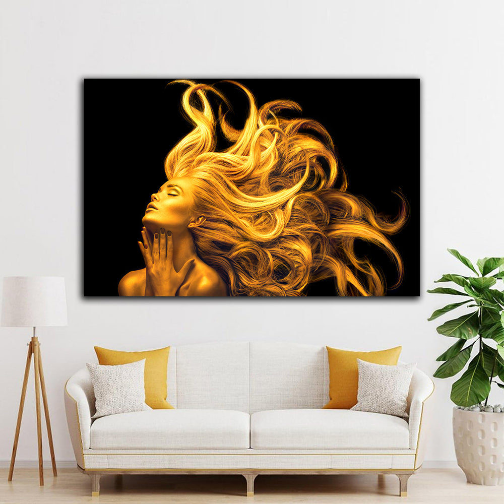 Descoperă un tablou canvas captivant ce ilustrează frumusețea contrastantă a unei femei cu părul de aur strălucitor, învăluită în misterul unui fundal negru intens. Această piesă de artă, care combină eleganța cu un aer de mister, adaugă o notă de sofisticare și profunzime oricărui spațiu de living sau dormitor modern. Perfect echilibrată între lumină și întuneric, este alegerea ideală pentru cei care caută să îmbogățească designul interior cu o operă de artă care să atragă privirea și să inspire.