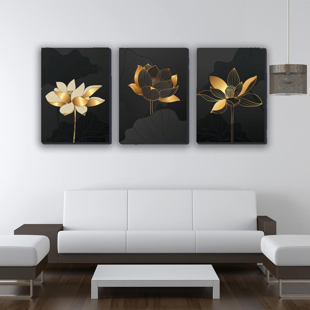 Set 3 tablouri canvas flori moderne intaglio minimaliste MODEL 45
