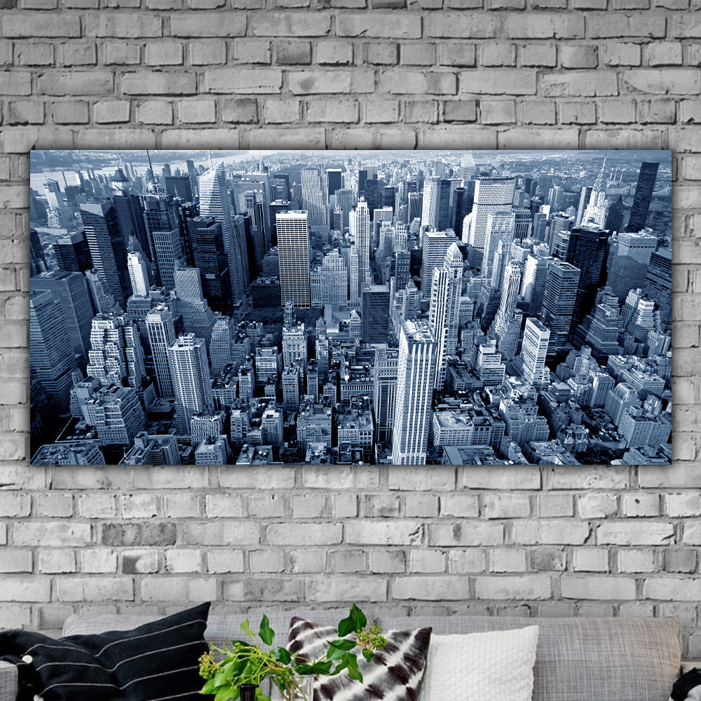 Tablou canvas peisaj oras New York privit de sus alb-negru zgarie nori