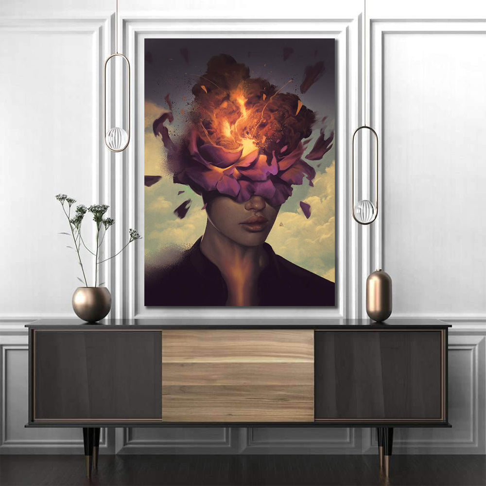 Tablou canvas portret abstract modern femeie cu fata de flori EXPLOSION FLOWER WOMAN