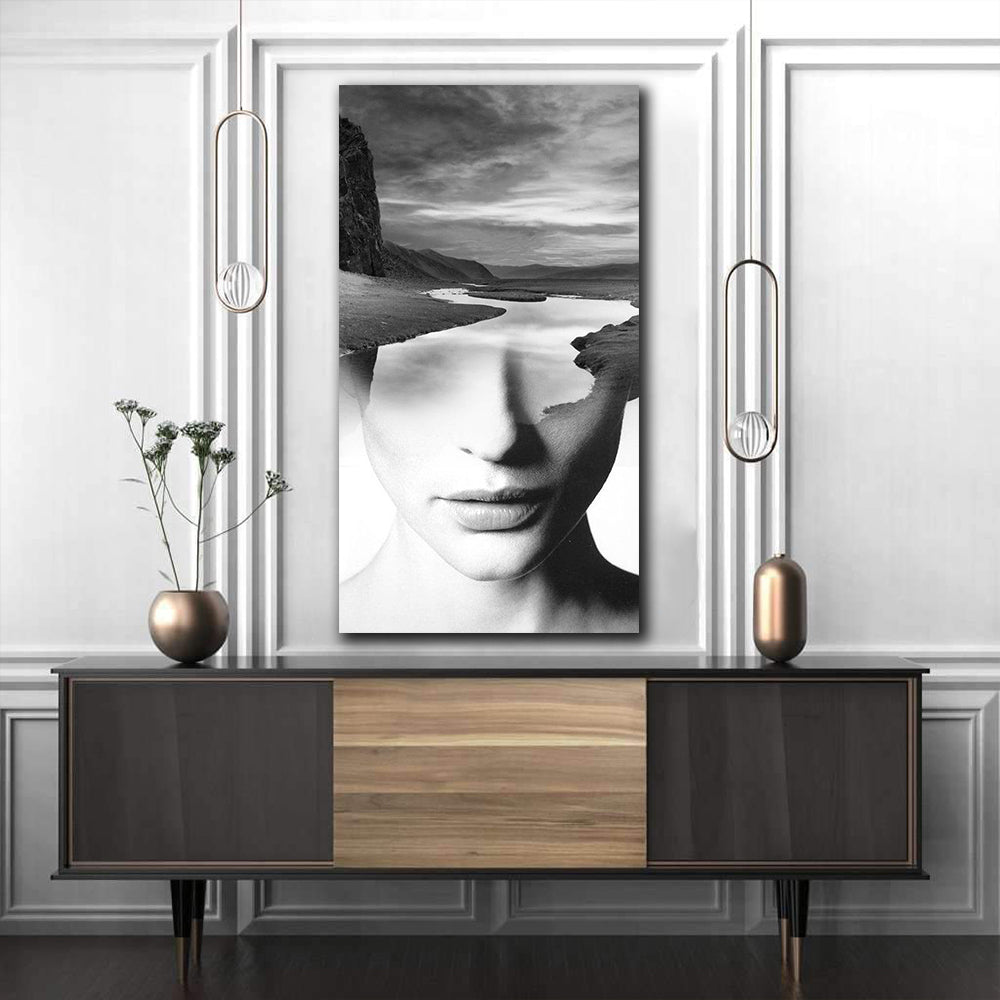Tablou canvas expunere dubla gri portret abstract modern RIVER WOMAN