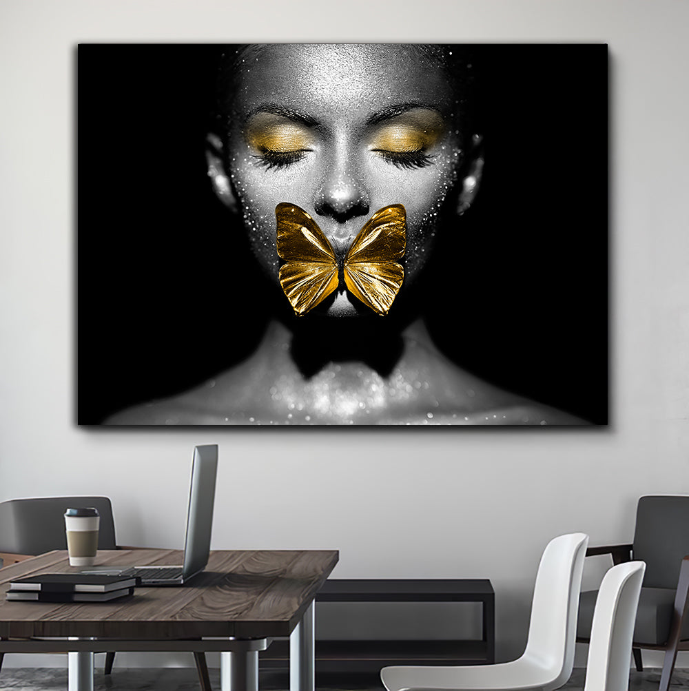 Redefiniți estetica și rafinamentul în spațiul dvs. cu acest tablou femeie cu fluture auriu si negru design black & gold spectaculos. Creat pentru a fi un punct focal în camera de vis sau în livingul modern, acest tablou adaugă o notă de lux și mister în decorul dvs. Fiecare detaliu este lucrat atent, oferind o experiență vizuală deosebită. Fabricat cu pasiune și talent în România.