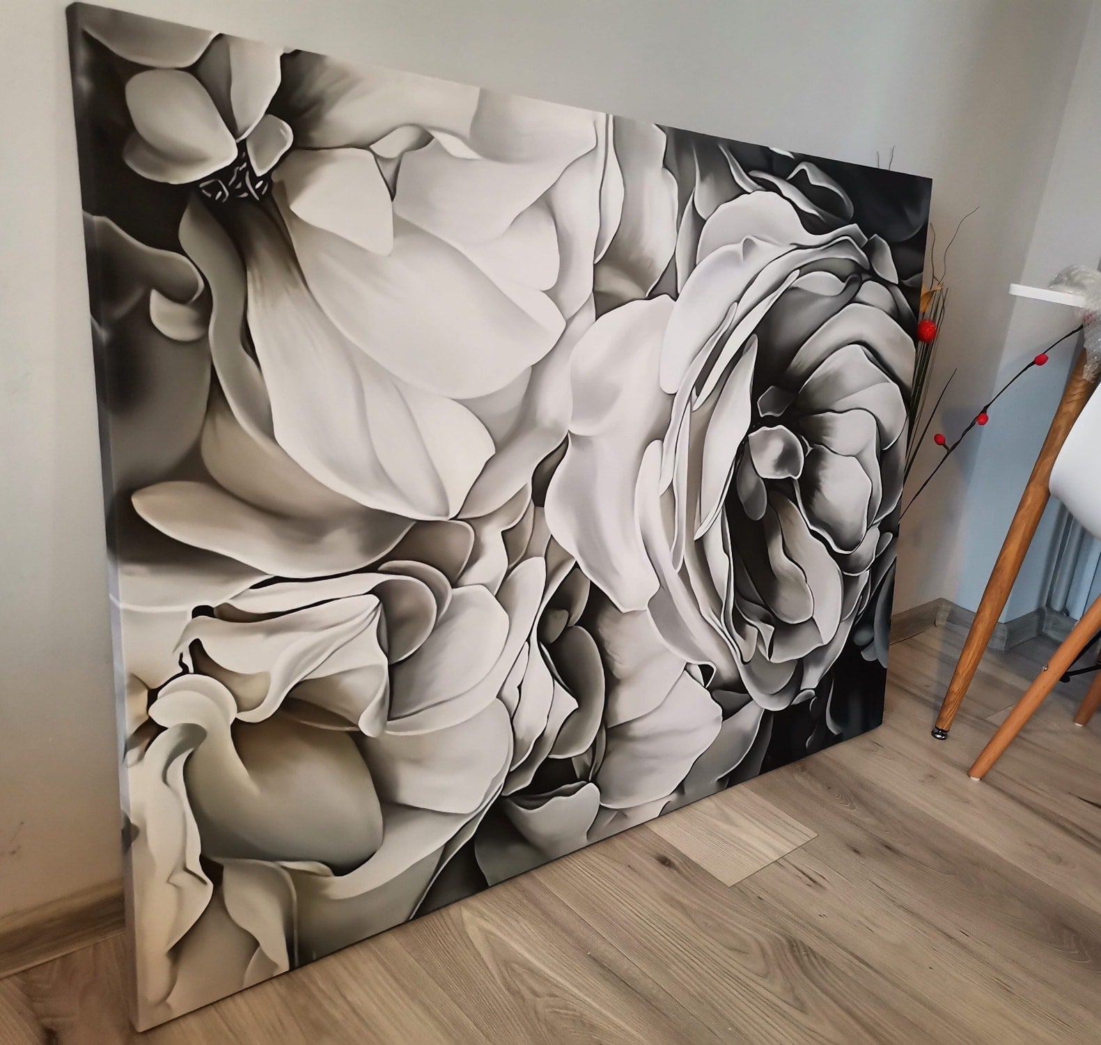 Tablou canvas petale trandafiri albi BIG WHITE ROSE PAINTING