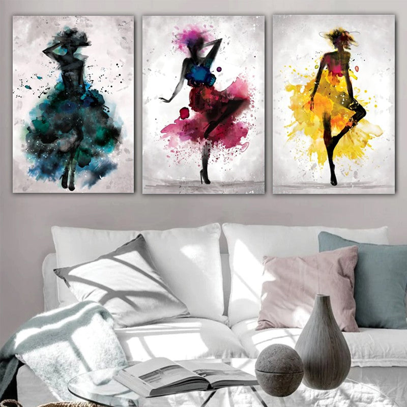 set Tablouri Canvas living abstract modern femei Design interior colorat Decoratiuni casa dormitor panza canvas Watercolor Woman BALLERINA